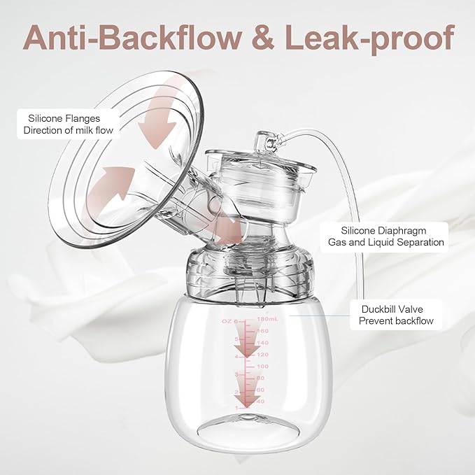 • 【Efficient Electric Pump】This electric pump is equipped with an electric motor to provide continuous and strong suction, allowing mothers to easily and quickly squeeze out milk. The portable pump has an anti backflow design, so mothers don't need to worry about the milk flowing back and damaging the machin.