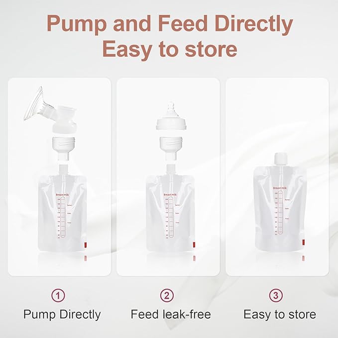 • 【Convenient Milk Storage Bags】:Equipped with specially designed milk storage bags, which allow mothers to express and store milk directly. The bag securely attaches to the pump and makes it easy to collect, store and transport milk without the need for additional containers.