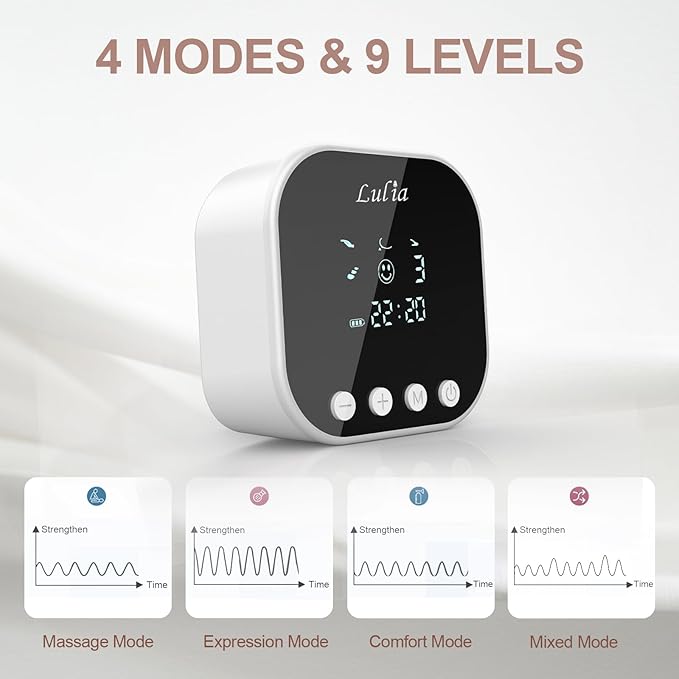 • 【Adjustable Suction Levels】:With 4 Modes and 9 suction levels, allowing mothers to customize the pumping experience according to their comfort and milk flow. This feature ensures a gentle and personalized pumping session, accommodating the varying needs of different users.